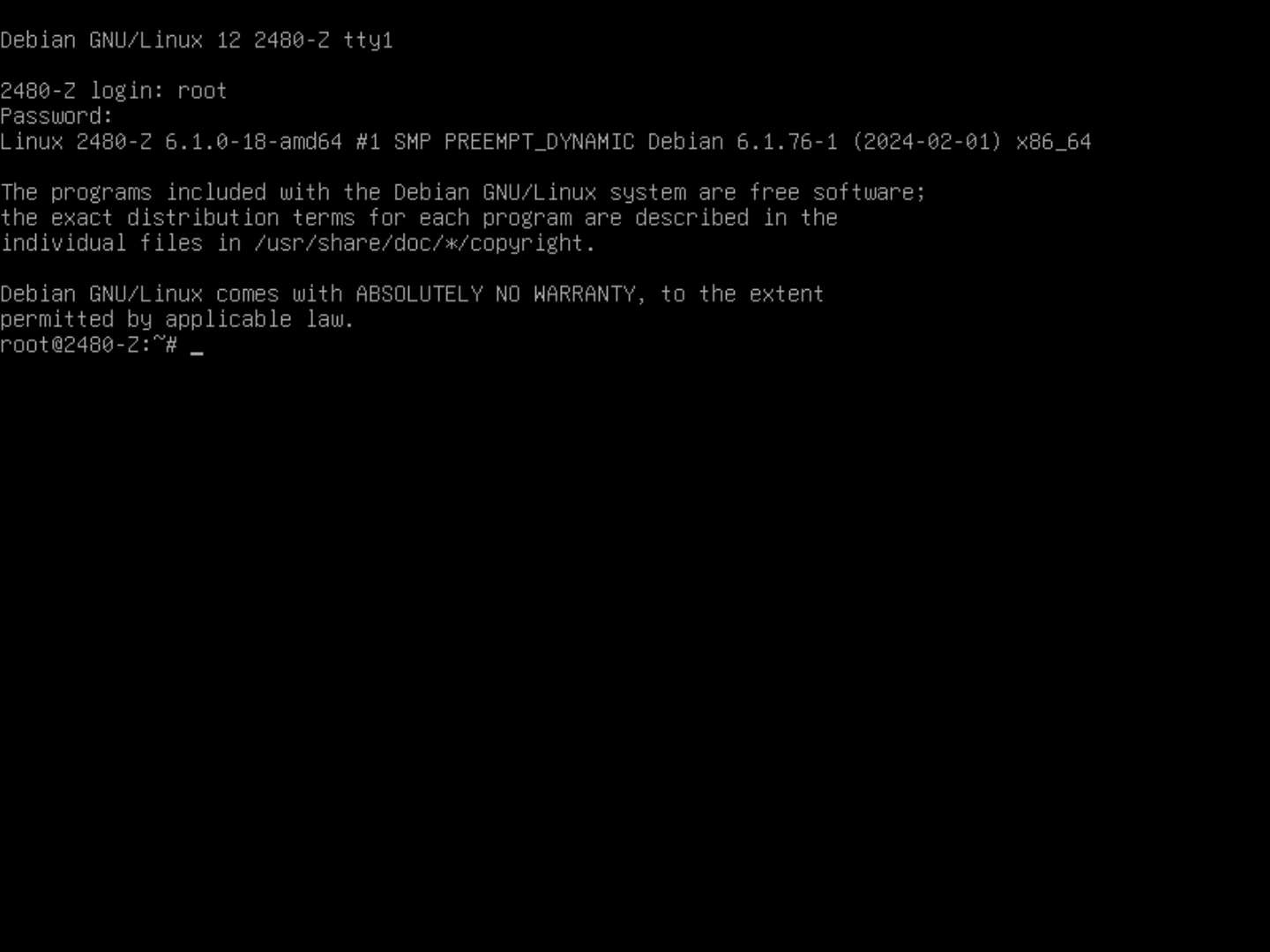 ben@2480-Z:~$ uname -a Linux 2480-Z 6.12.38+deb13-amd64 #1 SMP PREEMPT_DYNAMIC Debian 6.12.38-1 (2025-07-16) x86_64 GNU/Linux ben@2480-Z:~$